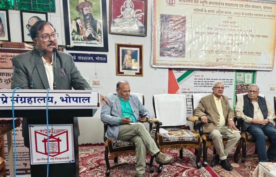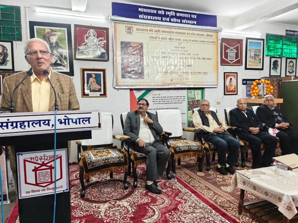 भोपाल । माधवराव सप्रे स्मृति समाचार पत्र संग्रहालय एवं शोध संस्थान परिसर में शुक्रवार को आंचलिक पत्रकारिता पर एक गंभीर विमर्श हुआ ।इस कार्यक्रम में वरिष्ठ पत्रकार और बायोपिक फ़िल्म निर्माता राजेश बादल की पुस्तक ‘गोलियों के सामने अडिग कलम’ का लोकार्पण हुआ।मुख्य अतिथि जाने माने संपादक और प्रेस कौंसिल के पूर्व सदस्य तथा एडिटर्स गिल्ड ऑफ इंडिया के पूर्व महासचिव प्रकाश दुबे थे।विशिष्ट अतिथि वरिष्ठ पत्रकार एन के सिंह थे। कार्यक्रम की अध्यक्षता संस्थान के संस्थापक संयोजक पद्मश्री विजय दत्त श्रीधर ने की।